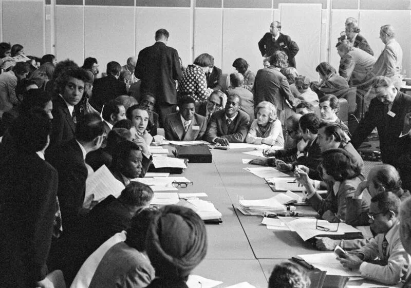 ‘Group meetings in the Caucus Room at the Palazzo dei Congressi, where the Conference is meeting, 11 November 1974. The World Food Conference has been called by the UN General Assembly in Resolution 3180 (XXVIII) of 17 December 1973, to meet in Rome, Italy, 5-16 November, under the auspices of the UN and the UN Food and Agriculture Organisation (FAO).’ - Food and Agriculture Organization of the United Nations. Reproduced with permission.